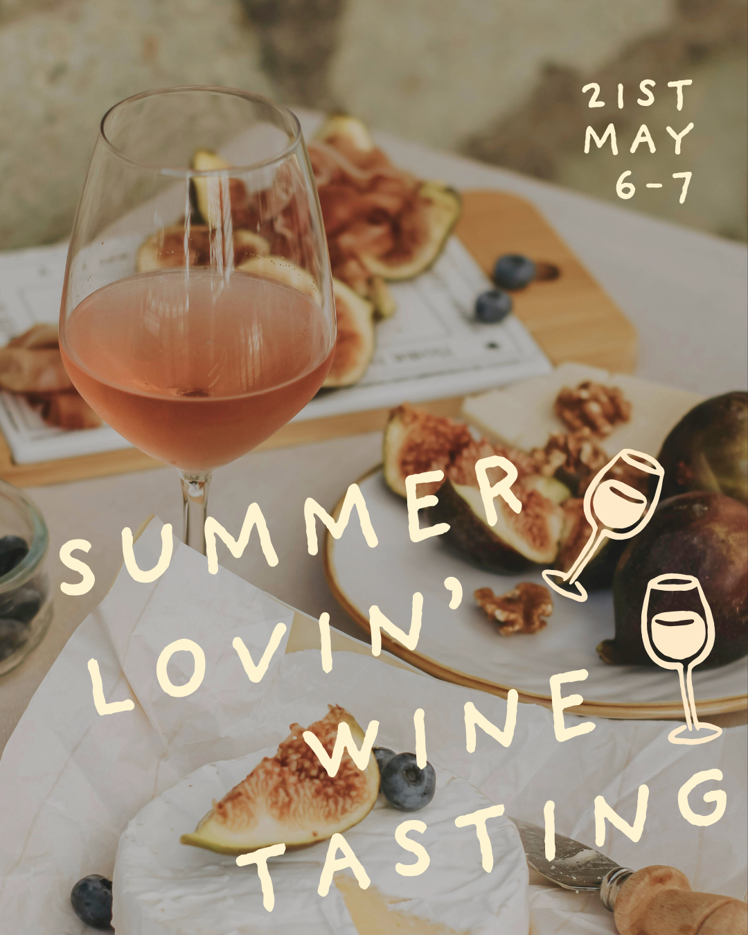 For May's wine tasting.. we'll be tasting light, summertime wines! Think whites & rosés.. paired with fresh fruits and cheeses from our friend, Shannon Yates with Gather and Graze.